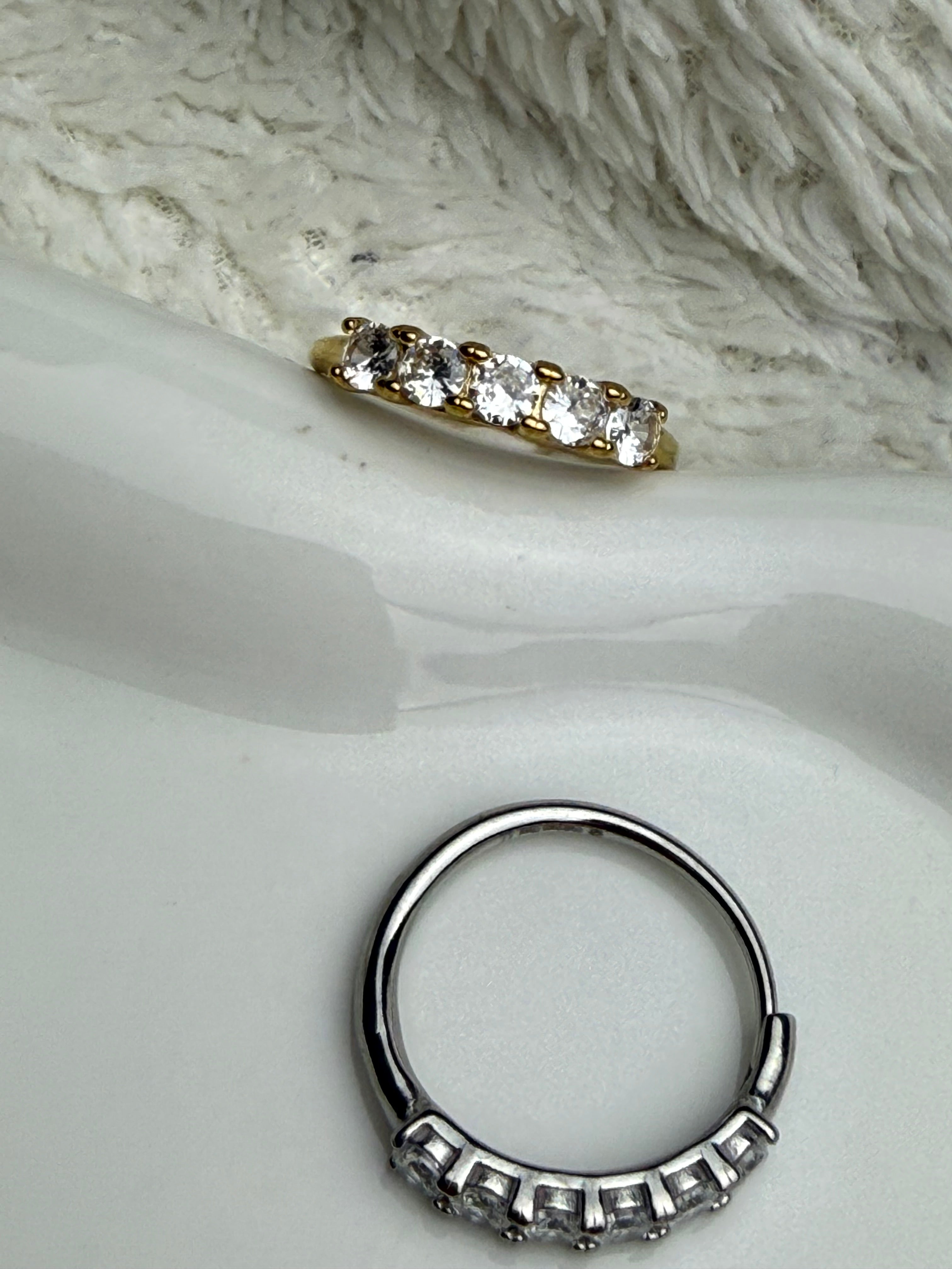 Un classico intramontabile, l'anello Eternity è caratterizzato da una delicata fascia di brillantini che avvolge il dito con eleganza. Realizzato in acciaio inossidabile, questo anello è un simbolo di luce e raffinatezza, perfetto per chi cerca un gioiello semplice ma prezioso. Adatto a ogni occasione, aggiunge un tocco di brillantezza discreta a ogni look.